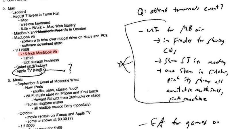 Twitter hesabı Internal Tech Emails, devam eden denemede açıkça mevcut kanıtların bir parçası olarak ortaya çıkan birkaç eski e-postayı ortaya çıkardı. Belki de en ilginç olanı, Steve Jobs’un Ağustos 2007’de yönetim ekibinin geri kalanına gönderilen el yazısı notlarından oluşan bir toplantı gündemidir.
