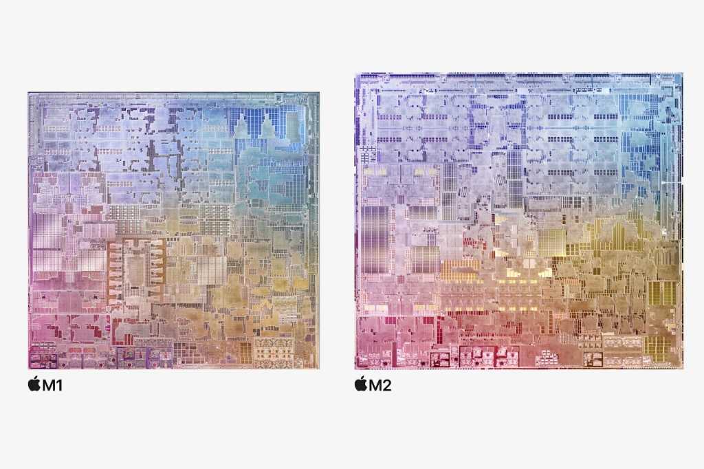 M2, M1 ile aynı sayıda çekirdeğe sahip bir temel yapılandırmaya sahip 5nm’lik bir yongadır: sekiz CPU çekirdeği (dört performans, dört verimlilik) ve sekiz çekirdekli veya 10 çekirdekli GPU. Bu, M1 ile aynı, ancak Apple performansını artırmak için iyileştirmeler yaptı; performans çekirdeklerinin L2 önbelleği 12GB’tan 16GB’a yükseldi ve saat hızları daha yüksek. Apple, M2’nin M1’e göre yüzde 18 genel CPU artışı ve GPU performansı ile yüzde 35’lik bir artış sunduğunu söyledi.