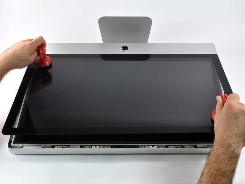 iMac‘de ekran kırılmaları, ekranda çatlaklar oluşması, gölge şeklinde karartı olması meşhurdur. Ekranlar incecik cam ve filmden oluştuğundan bırakın yere düşürmeyi ufacık bir darbe bile alsa ise kırılabilir. Bu durumda yapacağınız tek şey ekran değişimi işlemidir. Ekran değişimi için önce ön cam çıkartılır. Bu işlem sonunda LCD ekrana ulaşılır. LCD ekran sökülerek değişim yapılır. Ön cam üzerinde herhangi bir kırık ve çatlak yoksa geri takılır. Herhangi bir kırık veya çatlak olması durum da ise LCD ekran ile birlikte ön cam değişimi de yapılır. Değişimler sırasında yan sanayi ürün kullanılmamaya dikkat edilmesi gerekir. Ucuz ürün kullanımı kısa zaman içinde tekrar sorun yaşamanıza neden olur. Bu nedenle tamircinizden orijinal parçalar kullanmasını isteyin. Cihazda orijinal parça kullanılmaması durumunda sistemsel sorunlar ortaya çıkabilir.