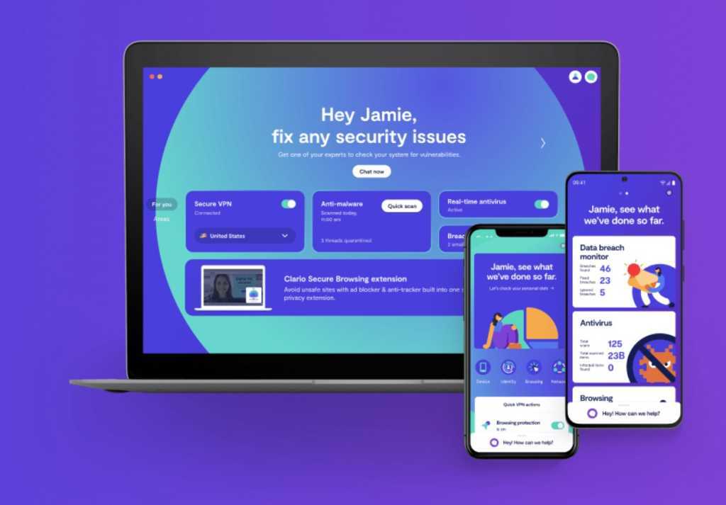 Mac için Clario 1.5, kendisini bir virüsten koruma ürünü olarak faturalandırır, ancak temel korumanın çok daha fazlasını sunar. Hem gerçek zamanlı hem de isteğe bağlı kötü amaçlı yazılım taramasına ek olarak, yazılım, pop-up reklamları ve web sitesi izleyicileri için reklam engellemeyi başlatır. VPN, internet bağlantınızı şifrelemek için güvenli bir tünel sağlar. Bir veri ihlali izleyicisi, e-postanız yakalanırsa ve potansiyel olarak bir siber saldırıya maruz kalırsa sizi uyaracaktır. Ayrıca, yardıma ihtiyacınız olursa şirket 7/24 canlı güvenlik desteği sohbeti sunar.