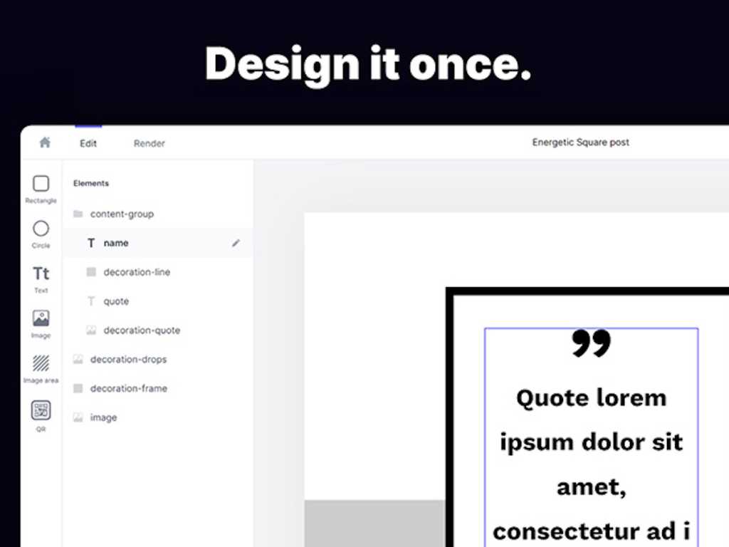 İster markalı sosyal medya içeriğinin seri üretimi olsun, ister tutarlı görünen YouTube küçük resimleri, emlak afişleri ve daha fazlası olsun, Robolly tüm süreci kolaylaştırır. 100’den fazla farklı önceden hazırlanmış şablon arasından seçim yapın veya sıfırdan bir tane oluşturun.